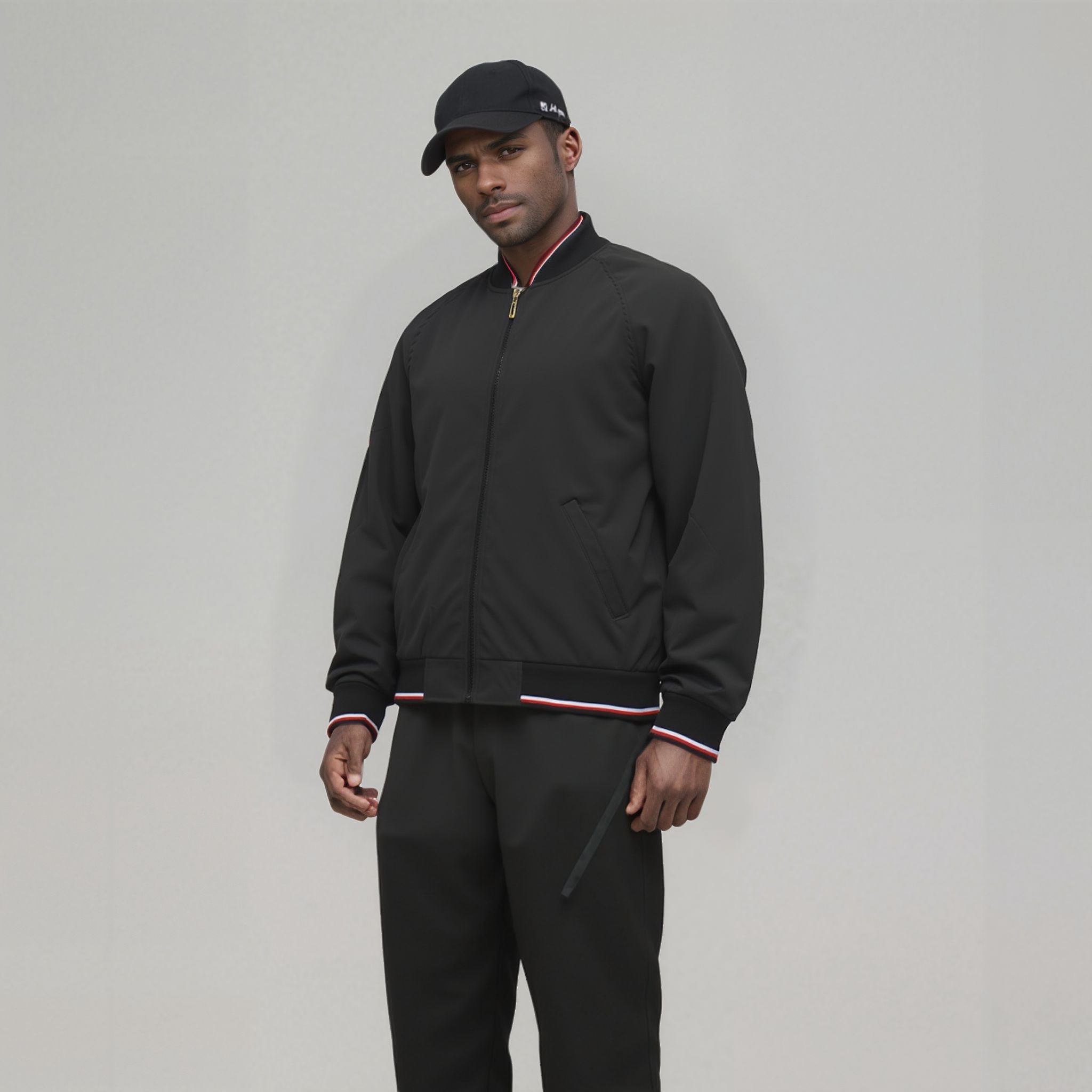 Casaco preto simples com partes vermelhas