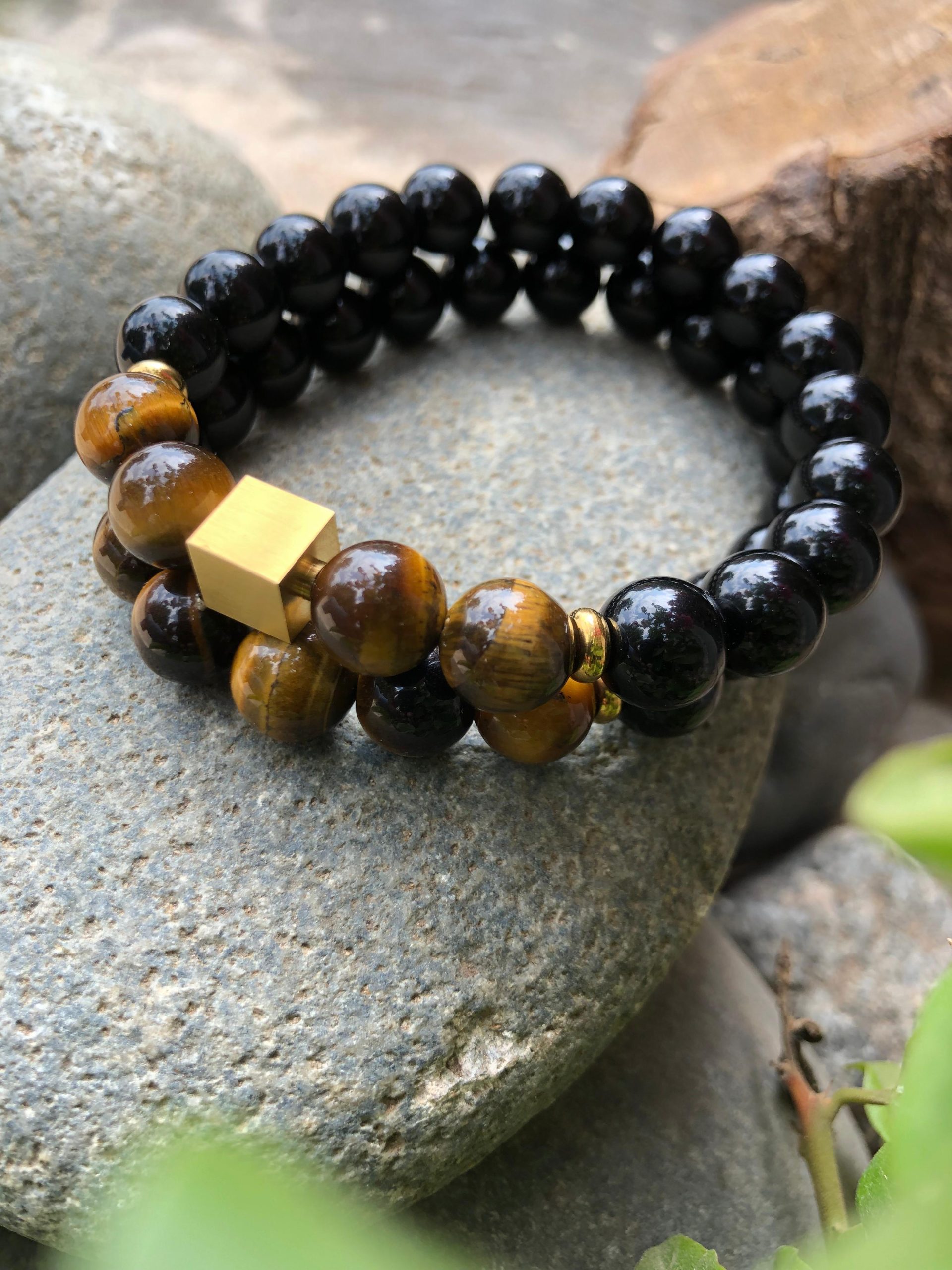 As Pulseiras de Olho de Tigre e Turmalina Negra são acessórios poderosos e elegantes, combinando duas das pedras naturais mais reconhecidas pela sua energia de proteção e força interior.