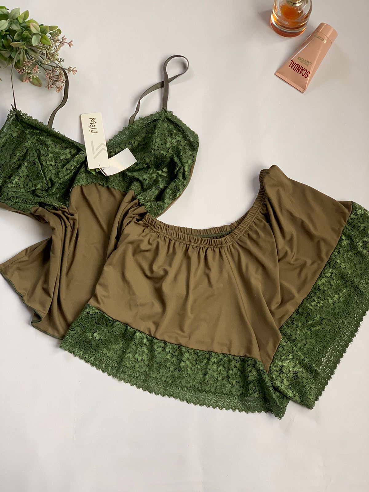 O Lingerie verde com Detalhes de Renda é a combinação perfeita de sofisticação, delicadeza e conforto. Ideal para momentos especiais ou para se sentir elegante no dia a dia, o conjunto apresenta detalhes em renda que valorizam a beleza feminina, oferecendo um toque suave e sensual.